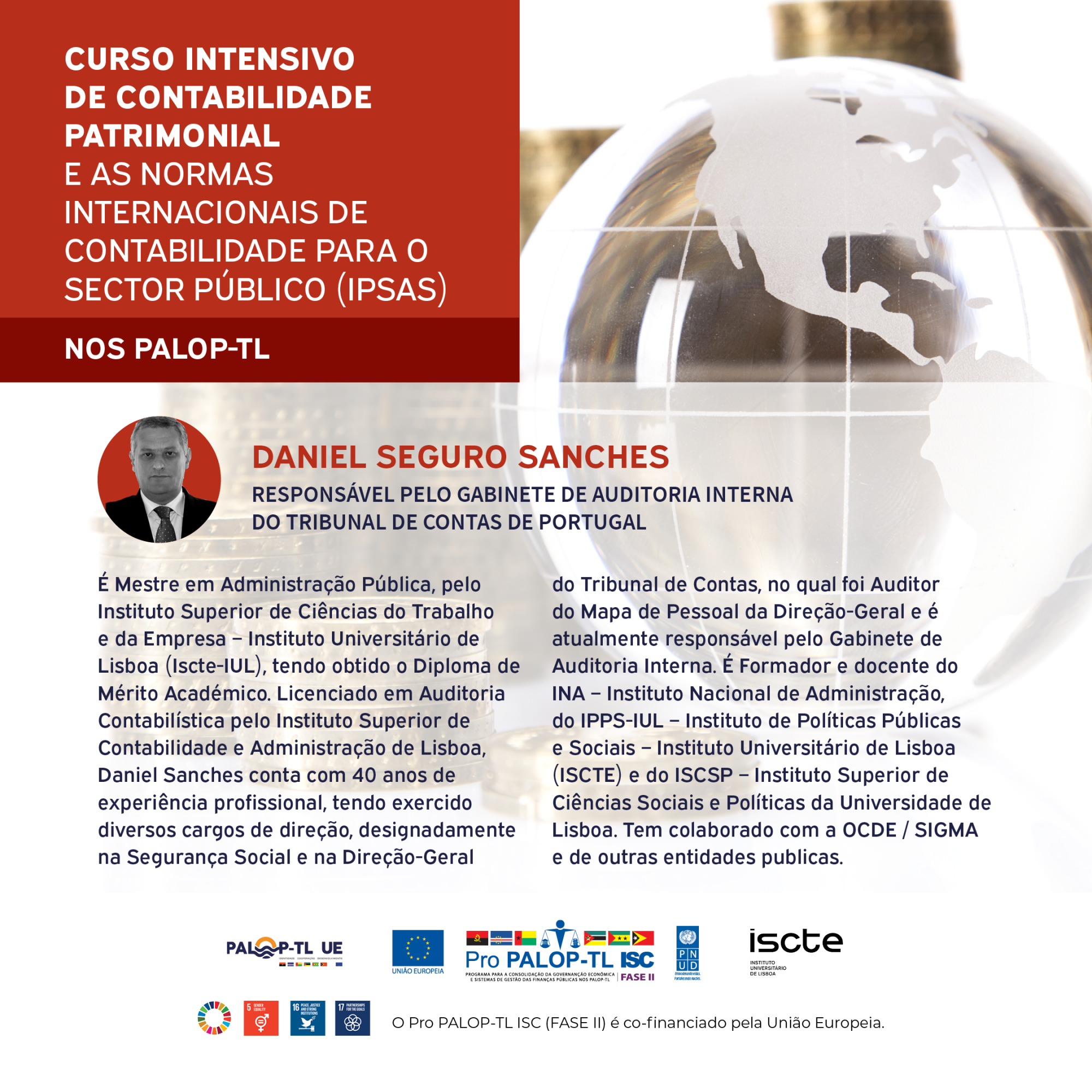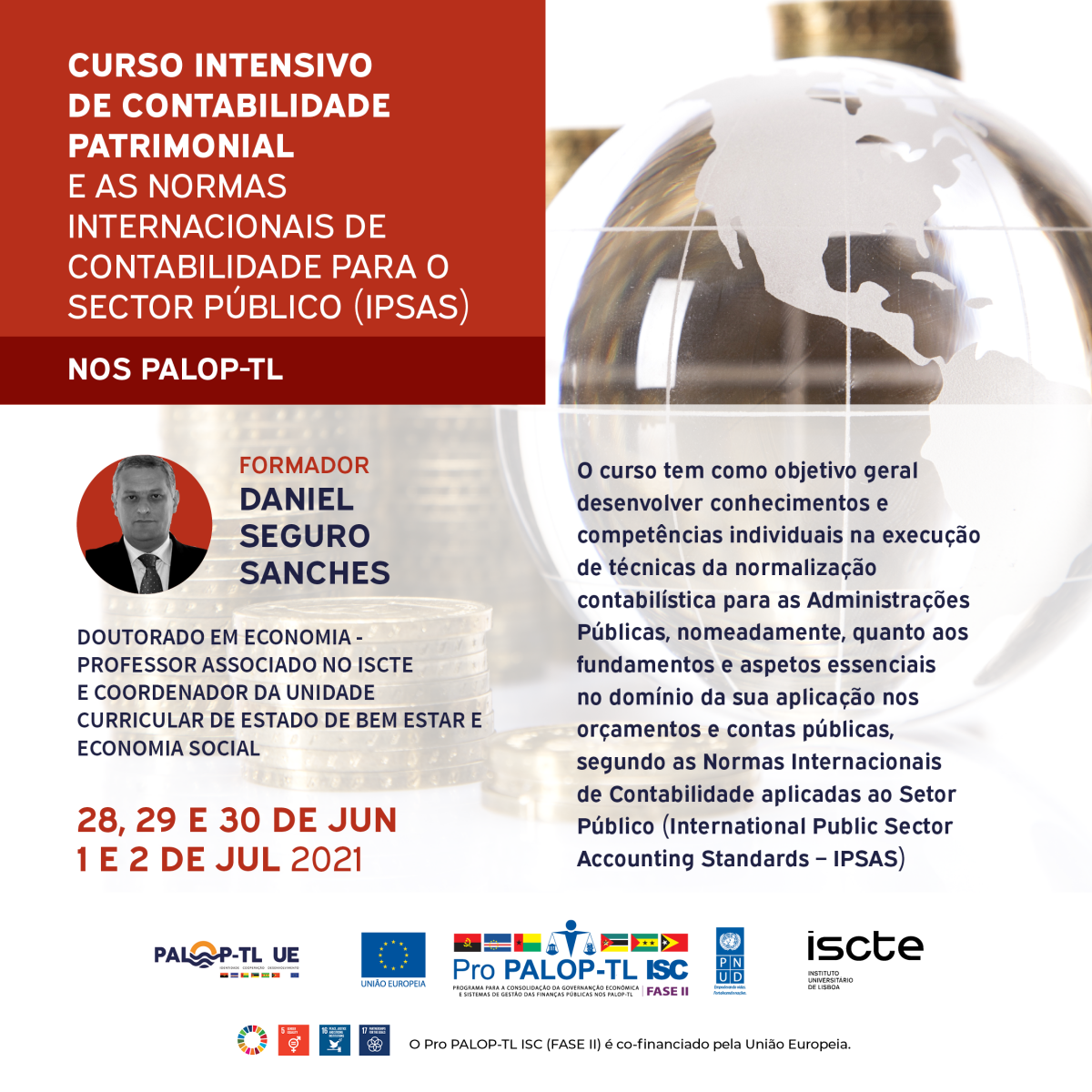 O Pro PALOP-TL ISC, em parceria com o ISCTE-IUL-IPPS, organizam, entre os dias 28 de junho e 2 de julho de 2021, um curso intensivo de “Contabilidade Patrimonial e Normas Internacionais de Contabilidade para o Setor Público (IPSAS)”, destinado a 64 dirigentes e técnicos superiores do Sistemas de Gestão das Finanças Públicas dos PALOP e Timor-Leste. Este programa de formação transversal é cofinanciado pela União Europeia e pelo Programa das Nações Unidas para o Desenvolvimento, no quadro do reforço das capacidades institucionais e técnicas para a melhoria da transparência orçamental e prestação de contas públicas.