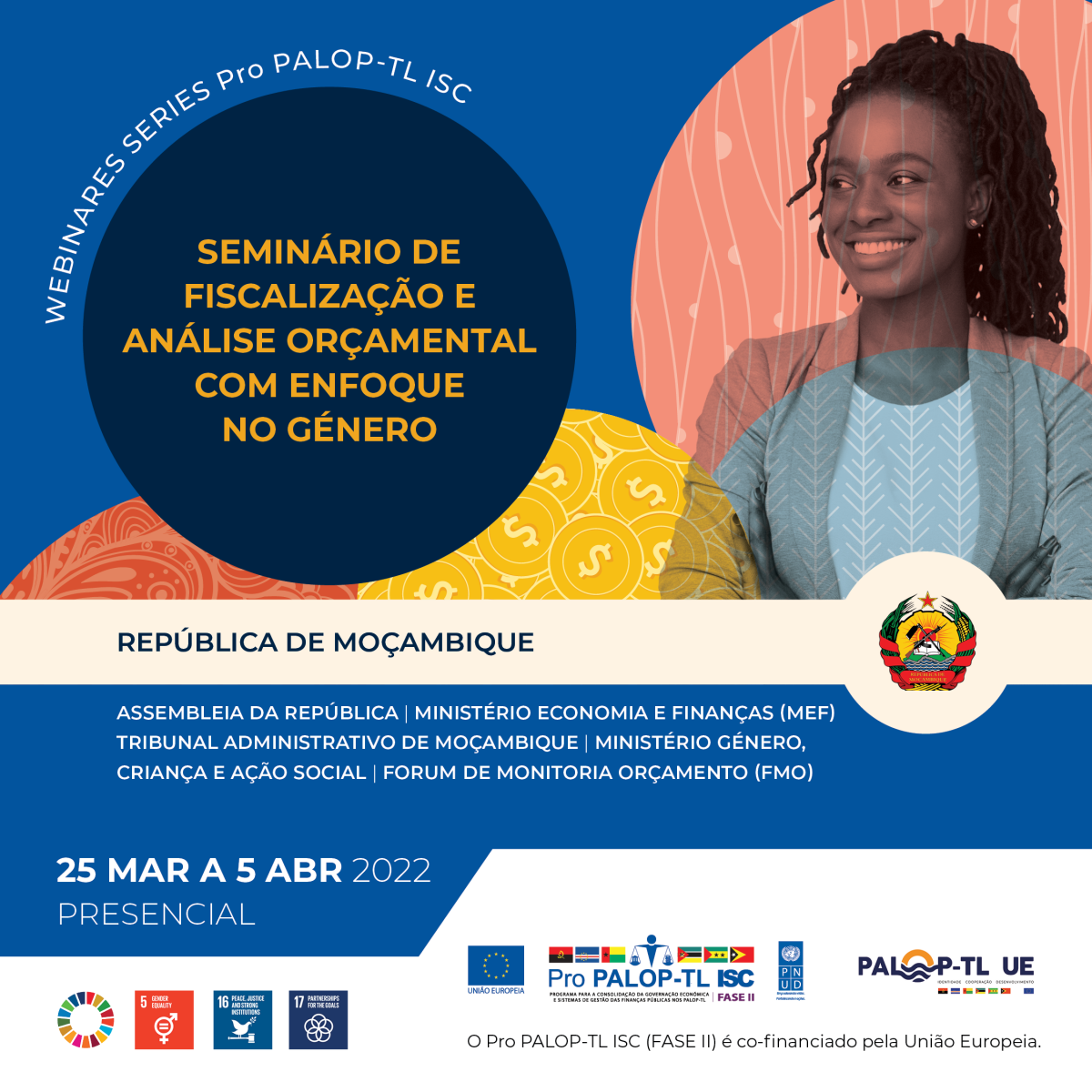 A cidade de Maputo acolhe, no dia 25 de março de 2022, no Hotel Radisson Blu, a Mesa Redonda sobre a Orçamentação Sensível ao Género, que irá reunir num mesmo fórum, a Assembleia da República, o Ministério da Economia e Finanças, o Tribunal Administrativo, o Ministério do Género, Crianças e Ação Social, e o Fórum de Monitoria Orçamento (FMO). Este encontro técnico irá decorrer no âmbito do Pro PALOP-TL ISC, programa regional de promoção da transparência e boa governação económica, financiado pela União Europeia, e gerido pelo Programa das Nações Unidas para o Desenvolvimento (PNUD).