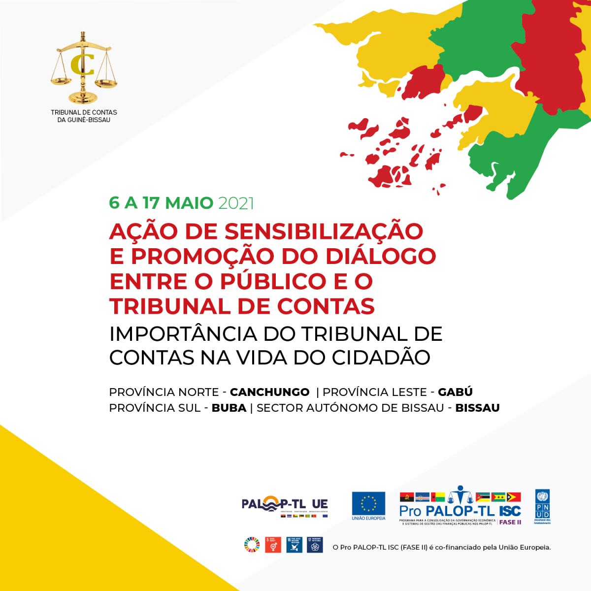 A campanha arrancou no dia 6 de maio, na região Norte do país, cidade de Canchungo, com a presença do Presidente do Tribunal de Contas da Guiné-Bissau, Deonísio Cabi, que presidiu à sessão de abertura, com a sensibilização e diálogo com os jurisdicionados, nomeadamente os governadores, administradores e diretores dos serviços públicos, sobre o seu papel e a importância desta instituição de controlo externo das contas públicas. Esta ação enquadra-se no âmbito do Plano de Trabalho com o Pro PALOP-TL ISC, projeto financiado pela União Europeia e implementado pelo PNUD.